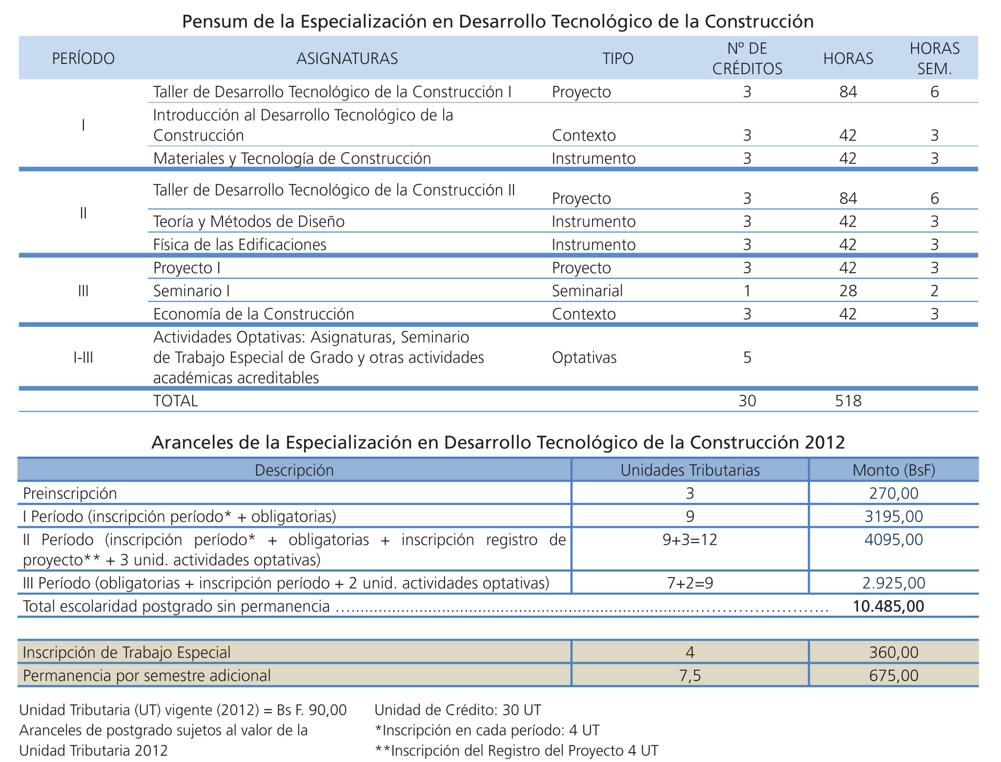 La Especialización en Desarrollo Tecnológico de la Construcción, que en su VI cohorte, creada en 1999 apunta hacia la formación avanzada y especializada de profesionales, que desempeñándose en el sector productivo, muestran interés en la utilización de tecnologías innovadoras o no tradicionales en soluciones constructivas con una visión racional y lógica desde la visión sostenible.