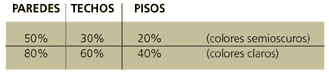 acabados interiores pueden afectar la distribución de la luz. Los