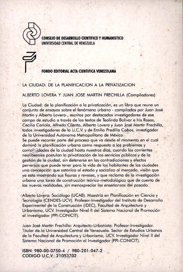 de la planificación a la privatización. Caracas, Coedición