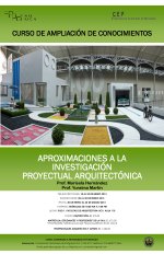 APROXIMACIONES A LA INVESTIGACIÓN PROYECTUAL ARQUITECTÓNICA Este curso se plantea propiciar un escenario para la comprensión de los puentes existentes entre los procesos proyectuales y la actividad de investigación en la arquitectura. |