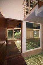 Casa 948 Culminada en el año 2006, esta casa por encargo se convierte en la opera prima de dos jóvenes arquitectos, Beltrán Haddad y Víctor Sánchez. La casa 948 está ubicada en una típica loma de la accidentada topografía del sur del valle de Caracas, en un lote de 527 m ² , dentro de un conjunto de casas relacionadas en el centro por un pequeño parque. La casa se compone de dos volúmenes vinculados por un cuerpo común que morfológicamente describe una “L”, organización que se establece a partir de un eje orientado en sentido este-oeste, que contiene el sistema de espacios de acceso y circulación que vinculan entre sí a las diversas áreas contempladas en el programa; de esta forma, se instaura una relación de continuidad que permite comunicar física y visualmente el acceso de la casa con el patio, que se configura entre el volumen y el muro medianero sureste, extendiéndose esta condición hasta el parque vecino. La reinterpretación contemporánea del patio y del zaguán tradicionales , ha sido motivo de referencia constante para los proyectistas; según Haddad y Sánchez el patio será el elemento ordenador del proyecto, garantía de ventilación e iluminación adecuada, además de recinto para el encuentro, la faena y el ocio. En el nivel superior se ubican las habitaciones secundarias abiertas hacia la vista del norte. Un volumen más pequeño e independiente ubicado al sur alberga en su primer nivel la habitación principal, debajo se encuentra la sala conectada con todo su entorno, generando una especie de caja de vidrio en medio de toda el área verde. La estructura de toda la casa es de hormigón armado, a excepción de la zona de circulación, donde se propone una estructura mixta con soportes de acero para cerrar a lo largo de toda la doble altura del pasillo con una piel ligera y transparente. www.fau.ucv.ve/proyecto_casa948.htm